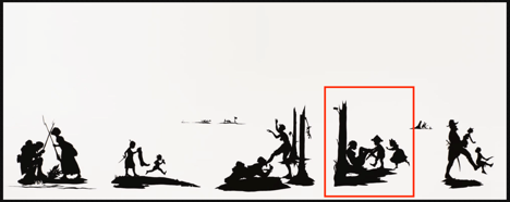 Fig 8. Kara Walker. The Battle of Atlanta: Being the Narrative of a Negress in the Flames of Desire – A Reconstruction. 1995. 17 paper silhouettes. Hammer Museum, Los Angeles, CA. https://hammer.ucla.edu/exhibitions/2023/kara-walker-selections-hammer-contemporary-collection. Accessed 17 Mar. 2024.